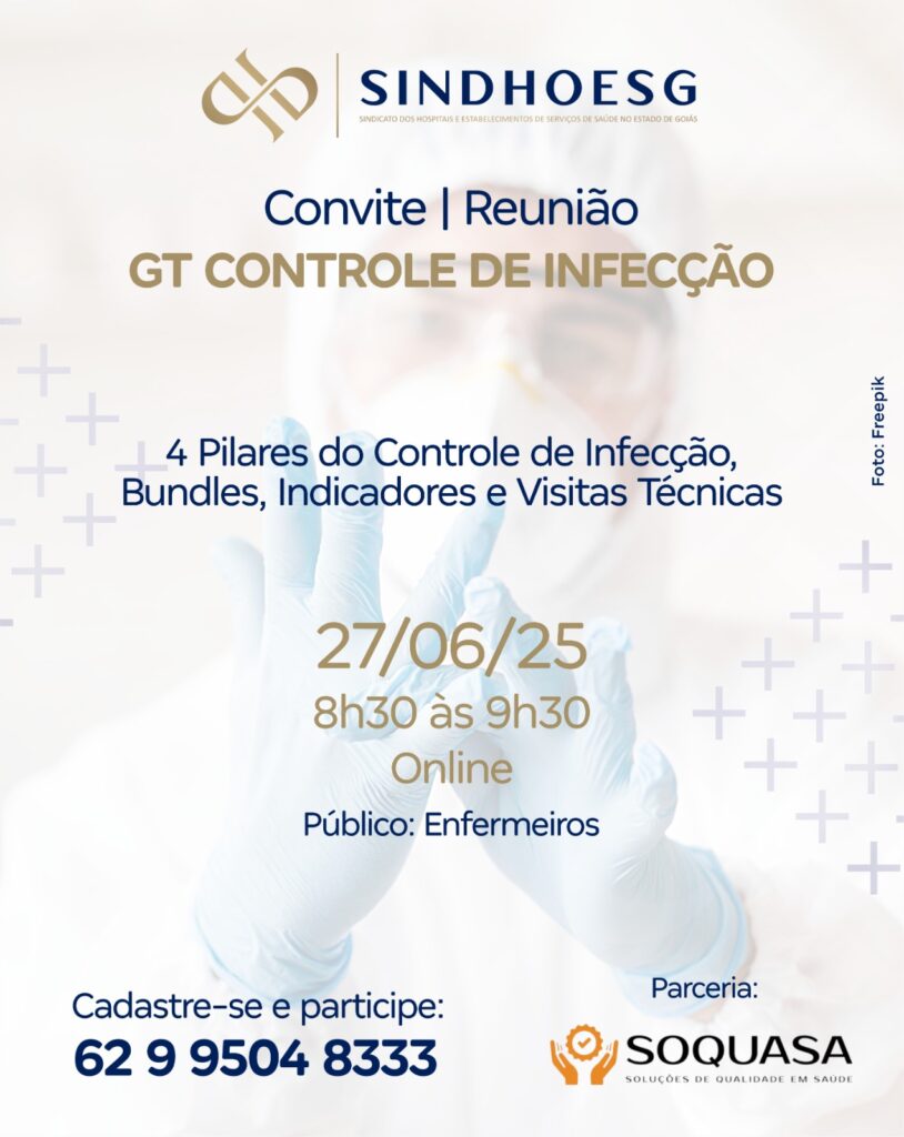Estamos te aguardando na primeira reunião do Grupo Técnico de Controle de Infecção, recém-criado pelo Sindhoesg em parceria com a Soquasa.