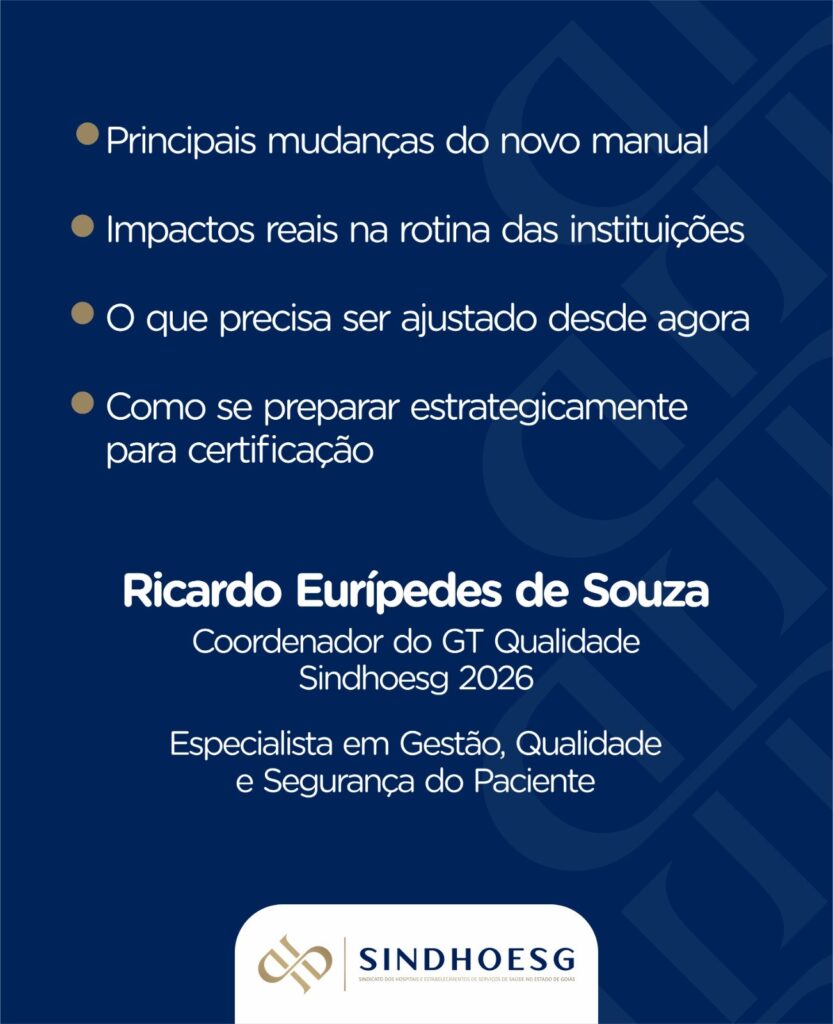 O coordenador do GT, Ricardo Eurípedes de Souza, vai abordar os principais impactos práticos e o que muda para as instituições de saúde.