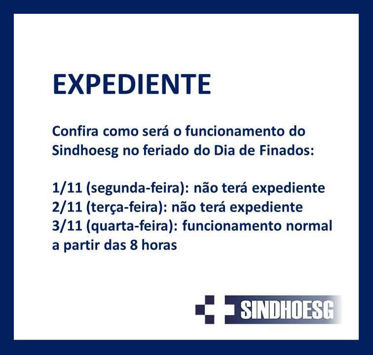 Devido ao feriado do Dia de Finados, o expediente no Sindhoesg será alterado no início da próxima semana. Confira: