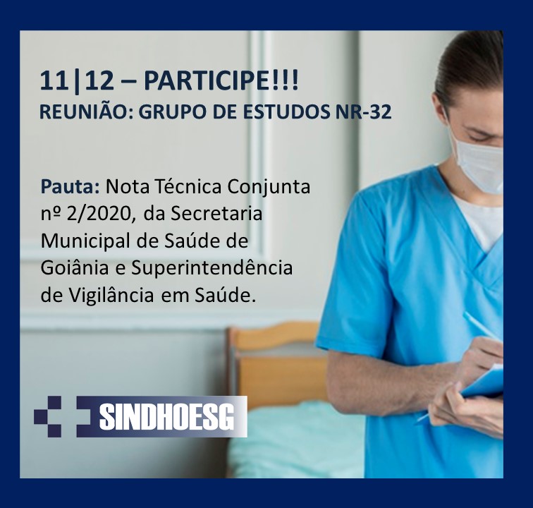 Representantes das Comissões de Controle de Infecção Hospitalar (CCIHs) de estabelecimentos filiados ao Sindhoesg estão convidados para a próxima reunião do Grupo de Estudos da NR-32, que acontecerá no dia 11 de dezembro (sexta-feira).