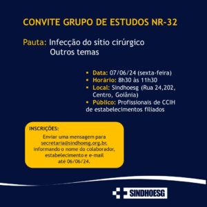 NOTÍCIAS 15|05: Nova palestra do Sindhoesg vai abordar a “Higienização das mãos na prevenção de bactérias multirresistentes” Leia mais » 2 de maio de 2024