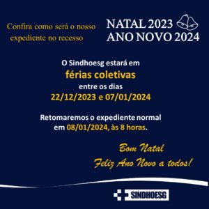 NOTÍCIAS Sindhoesg terá férias coletivas entre 22/12/23 e 07/01/24 Leia mais » 20 de dezembro de 2023