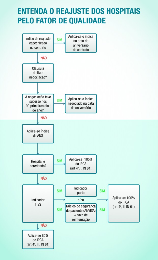 O Fator de Qualidade aplica o índice de reajuste nos contratos entre os estabelecimentos e as operadoras de plano de saúde. O critério faz parte de um novo modelo de remuneração implantado para hospitais e profissionais que atendem na área da saúde suplementar. É utilizado quando não há negociação entre operadoras e prestadores e quando não há um índice previsto no contrato ou acordo entre as partes.